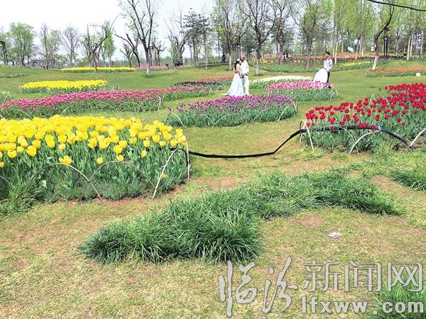 臨汾新聞網訊 陽春四月、春暖花開。在市區澇洰河公園內,縷縷花香隨風飄來,各色郁金香競相開放,不少新人在此拍攝婚紗照留念。
