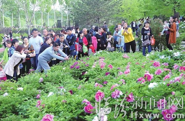 臨汾新聞網訊 4月17日,在市區汾河景區牡丹園,眾多市民在園區拍照留念。連日來,汾河景區牡丹園的牡丹花競相綻放,吸引了眾多市民、游客前去賞花、踏青。