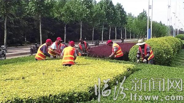 臨汾新聞網訊 連日來,市綠化二隊組織綠化專業技術人員分路段、分區域對轄區綠地草坪進行重點修剪,有效地提升了綠化整體的色彩感和立體感,全力提升綠化管護水平。圖為市綠化二隊工作人員正在修剪綠化帶。