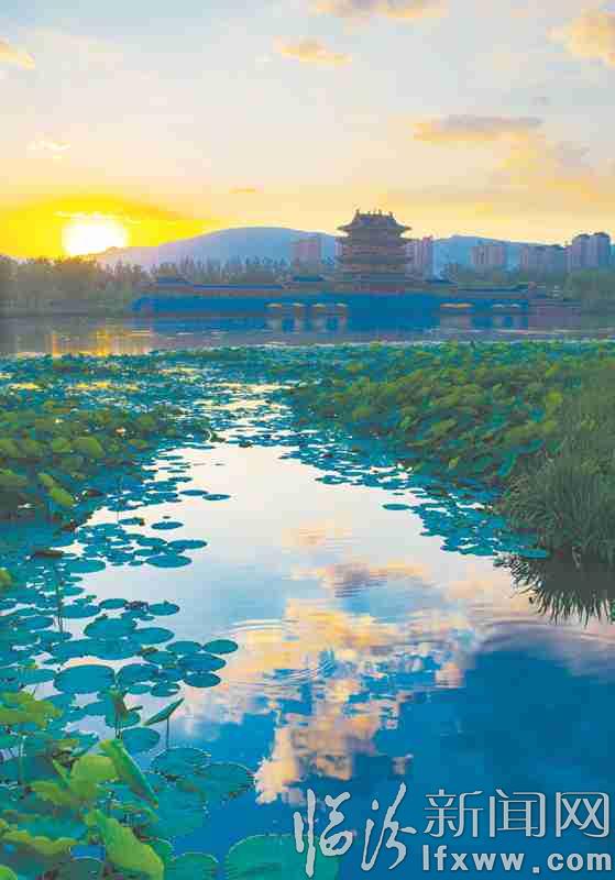 臨汾新聞網訊 6月15日下午,汾河公園在晚霞映襯下秀美多彩,美輪美奐,朵朵的白云被夕陽染成橘紅色,層次分明,猶如油畫美不勝收。 記者 張蘊強 攝