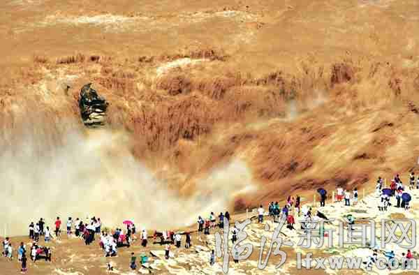 臨汾新聞網(wǎng)訊 7月21日,游客在吉縣黃河壺口瀑布景區(qū)游覽。近日,受上游強降雨影響,黃河干流晉陜峽谷水勢大漲,壺口瀑布迎來伏汛,主副瀑布連成一片,水流湍急,驚濤拍岸,展現(xiàn)出詩人描寫的“黃河天下險,壺口最驚人,飛流撼天地,濤聲泣鬼神。”壯麗景觀,吸引了眾多游客和攝影愛好者。 記者 李虎威 鄭遠(yuǎn)飛 攝
