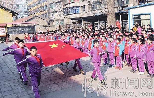 臨汾新聞網(wǎng)訊 2月13日,在臨汾市興國學(xué)校小學(xué)部,師生們正在參加升國旗儀式。新學(xué)期伊始,該學(xué)校將升國旗作為開學(xué)第一課,通過國旗下的宣誓和演講活動,培養(yǎng)全體少先隊員的愛國主義情操以及勤奮學(xué)習(xí)和刻苦鉆研的精神。 記者 閆銳鵬 攝