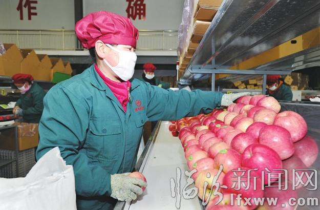 圖為日前該公司工作人員正在把收回來的蘋果整理裝箱。