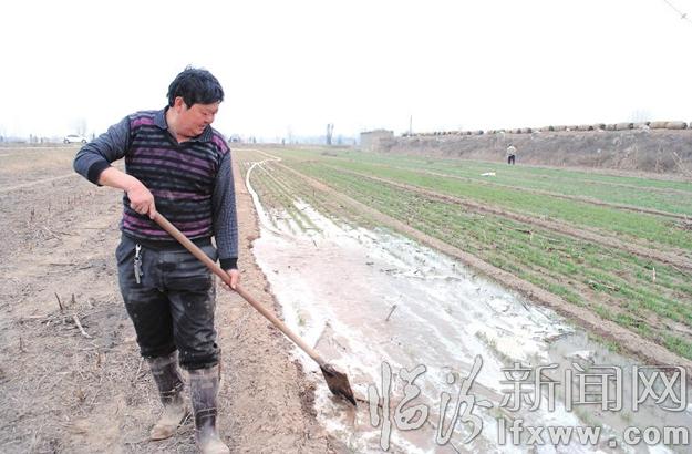 臨汾新聞網訊 日前,曲沃縣曲村鎮下塢村農民杜五四正在灌溉自家的10畝小麥。大地回春,氣溫有了明顯的回升,該縣農民抓住有利時機開始忙著給小麥施肥、澆水、鋤草,力爭今年有個好收成。