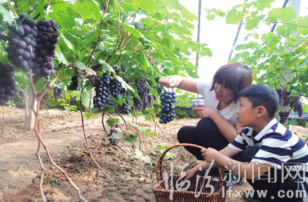 臨汾新聞網(wǎng)訊 近日,在曲沃縣曲村鎮(zhèn)下塢村的葡萄種植大棚里,游客正在采摘葡萄。據(jù)了解,每逢雙休日或節(jié)假日,前來(lái)下塢村采摘葡萄的游客絡(luò)繹不絕,最多時(shí)一天能收入5000余元,為種植戶帶來(lái)了不菲的經(jīng)濟(jì)收入。