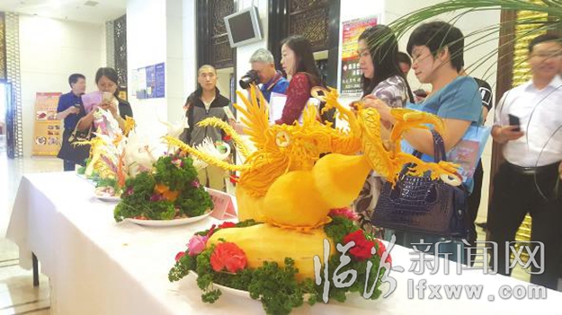 臨汾新聞網訊 5月23日,在臨汾市旅游飯店協會第三屆第四次全體會議召開期間,大會組委會在侯馬市華翔酒店舉辦了菜品雕刻展,來自我市數家飯店的大廚,在冬瓜、白蘿卜等食材上精心雕刻,用心搭配,向大家展示了食雕技藝。