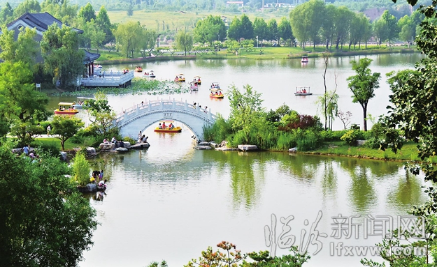 臨汾新聞網訊 7月2日,市民在澇洰河生態公園里泛舟游玩。