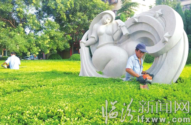 臨汾新聞網(wǎng)訊 7月22日清晨6時許,在兵站路、南外環(huán)路段,臨汾市城市綠化一隊的綠化工人們正在對行道樹進行修剪作業(yè)。連日來,綠化工人頂著烈日修剪花草,“花草妝滿城,佳木送涼陰”,他們默默無聞的勞作,將城市裝點得格外亮麗。