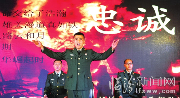 臨汾新聞網訊 7月30日,消防戰士在表演情景劇《忠誠》。當日,臨汾消防支隊舉行紀念建軍90周年慶“八一”文藝匯演,戰士們自編自演的18個精彩節目生動展現了消防官兵的良好精神風貌和無私奉獻精神。