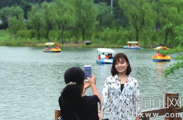 臨汾新聞網(wǎng)訊 8月26日是暑假的最后一個(gè)周日,許多家長(zhǎng)帶著孩子來(lái)到市區(qū)澇洰河公園,享受入秋后涼風(fēng)習(xí)習(xí)、風(fēng)和日麗的秀美景色。圖為一位媽媽為即將上大學(xué)的女兒留下美麗瞬間。 (王輝耀)