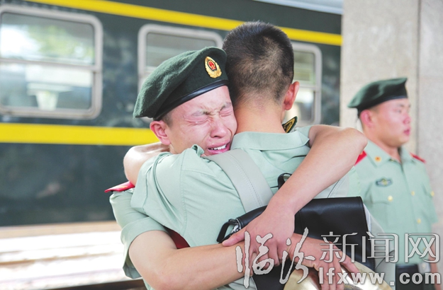 臨汾新聞網訊 又到一年退伍時。9月1日是武警臨汾支隊退伍老兵離隊的日子。這一天,昔日的七尺硬漢揮淚如雨;這一天,退伍老兵用錚錚誓言訴說軍人的“責任與擔當”。他們或擁抱,或相互囑托,兩眼早已被淚水浸紅,哽咽的聲音與暖心囑托在此時已成為最美的祝福。 記者 祁欣攝