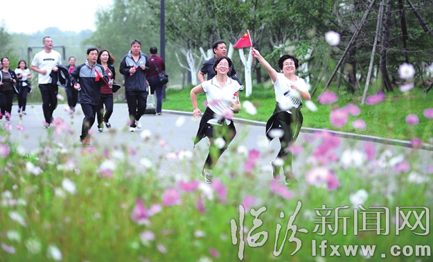 臨汾新聞網訊 9月25日上午,農行臨汾分行員工手舉國旗參加馬拉松競賽。