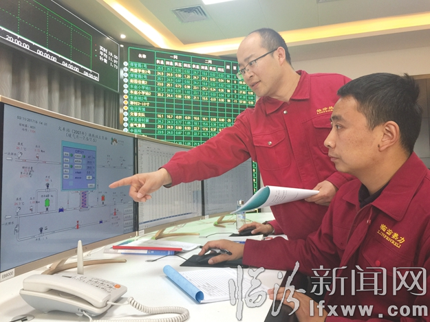 臨汾新聞網訊 日前,臨汾熱力公司副總工程師陳正鵬、張巖正在熱力調度指揮中心總控室查看市區各換熱站水力平衡。