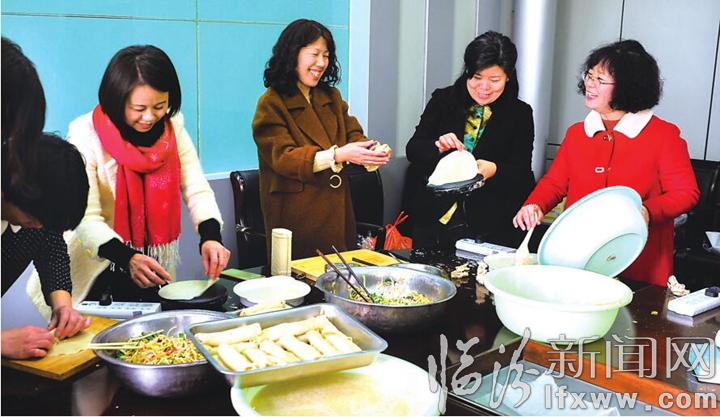臨汾新聞網訊 3月7日,臨汾日報社婦委會組織婦女干部職工開展了“一起做春卷,共慶三八節”活動。她們分工合作,其樂融融,并將自己的快樂成果分享給報社一線工作人員。