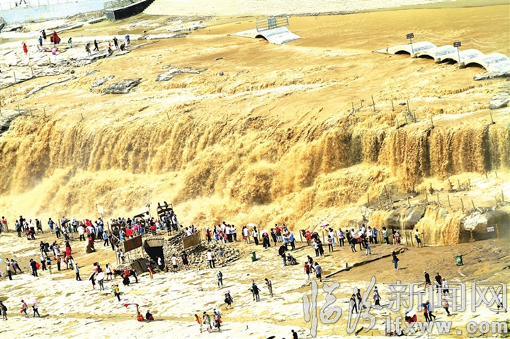 臨汾新聞網訊 7月15日,游客在吉縣壺口瀑布景區觀賞黃河壺口瀑布。近日,黃河上游地區出現強降雨,位于晉陜交界處的黃河壺口瀑布水量增大,形成的瀑布群氣勢磅礴、雄渾壯美,吸引了眾多游客。