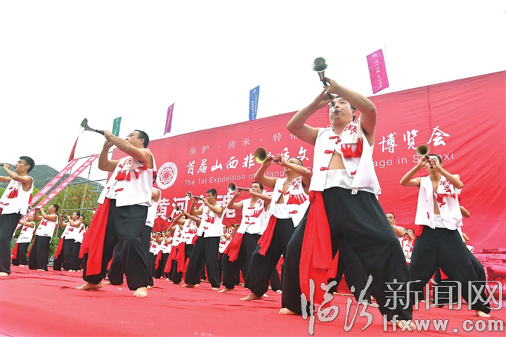 臨汾新聞網(wǎng)訊 九月十六日上午,在黃河壺口瀑布岸邊,首屆山西非物質文化遺產博覽會——“黃河之魂·多彩非遺”系列活動啟動儀式舉行。吉縣嗩吶、霍州威風鑼鼓、翼城花鼓等非遺項目逐個登臺表演,充分展示我市非遺保護成果。