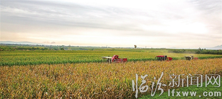 臨汾新聞網訊 近日,襄汾縣君強農場正在用農機收割玉米。