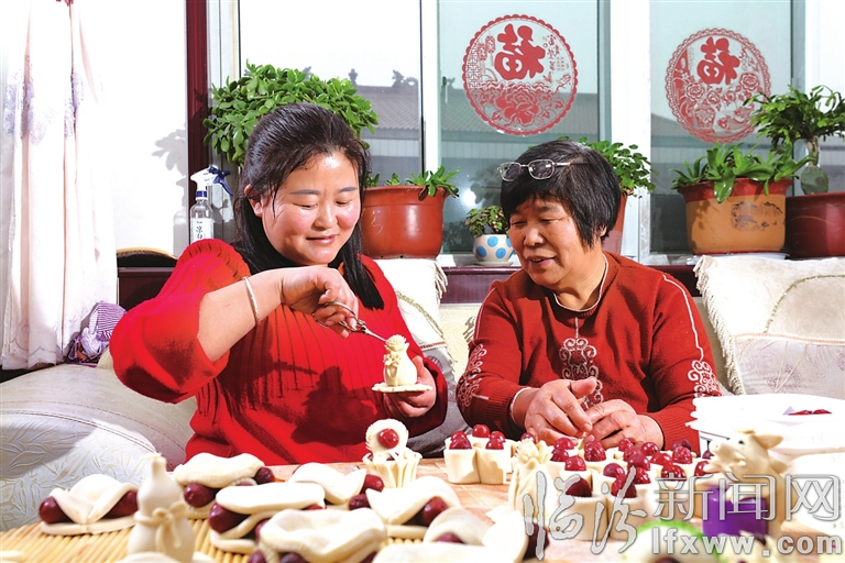 襄汾縣古城鎮站里村面塑藝人王文娟一家人在制作年饃,迎接新年的到來。