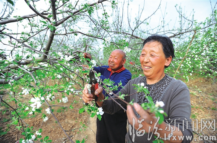 臨汾新聞網(wǎng)訊 4月7日,在堯都區(qū)縣底鎮(zhèn)城隍村,村民景耀奎夫婦在果園修剪蘋果樹。近年來,縣底鎮(zhèn)依托當(dāng)?shù)氐耐寥篮蜌夂驐l件,探索推行“企業(yè)+基地+農(nóng)戶”的模式,大力發(fā)展蘋果產(chǎn)業(yè),并為果農(nóng)提供技術(shù)指導(dǎo)、市場信息、果品銷售等服務(wù),拓寬了農(nóng)民的增收致富路。