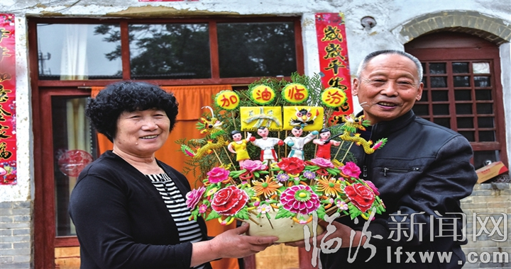 臨汾新聞網訊 5月8日,在襄汾縣景毛鄉北李村,面塑藝人梁秋葉、張建中夫婦在展示創作的“加油臨汾”面塑作品。連日來,省級非物質文化遺產“太平面塑”傳承人梁秋葉用面塑的形式,以花樣滑冰、空手道、飛碟射擊項目為背景,精心創作了喜迎二青會為主題的“加油臨汾”面塑作品,迎接二青會的到來。