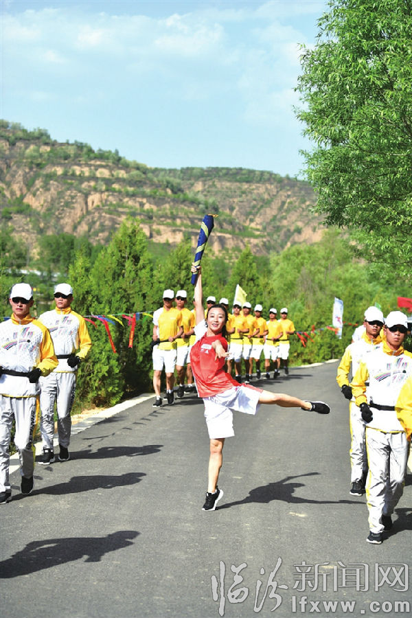 臨汾新聞網訊 5月17日,二青會火炬在永和隰縣傳遞。圖為在隰縣梨博園傳遞火炬時的情景。