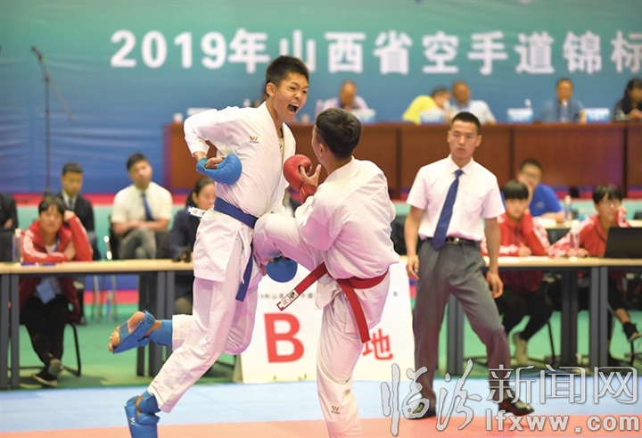 臨汾新聞網訊 7月9日,山西省空手道錦標賽暨二青會測試賽在臨汾同盛實驗中學藝體館開賽。賽場上,運動員們個個精神抖擻、生龍活虎,各種虎虎生風的招式你來我往,展示出各自的風采,贏得了現場觀眾的陣陣掌聲。