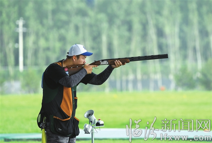 臨汾新聞網訊 8月10日,全國第二屆青年運動會射擊(飛碟項目)比賽在我市開賽,來自全國各地的運動員將在為期6天的賽程里角逐9枚金牌。圖為參賽選手在比賽中。