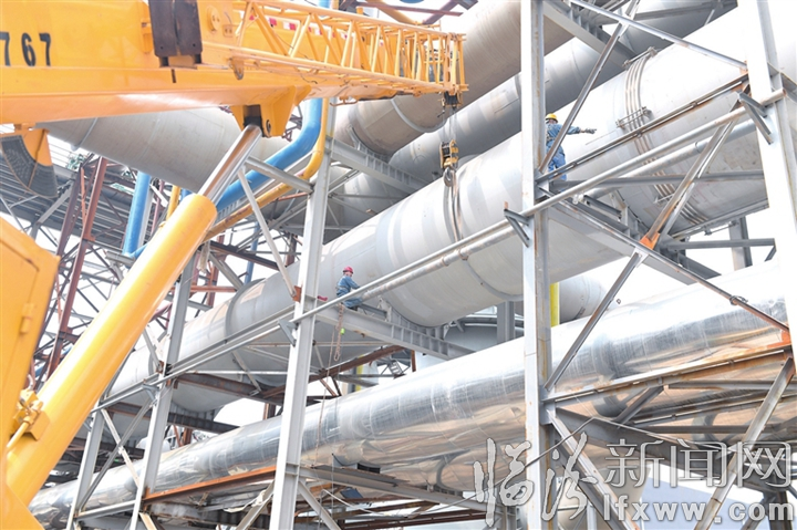 臨汾新聞網訊 今年,曲沃縣山西晉南鋼鐵集團投資近百億元升級改造建設2座1860立方米高爐及配套2座150噸轉爐,以產能置換建設焦化二期170萬噸項目。該項目建成投產后,可實現一鍵智能煉鋼、一鍵智能煉鐵,對推動傳統產業優化升級,引領鋼鐵企業高質量發展具有十分重要的意義。圖為工人們正在安裝設備。