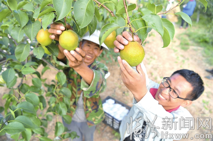 臨汾新聞網(wǎng)訊 8月20日,在汾西縣高寒農(nóng)牧專(zhuān)業(yè)合作社的千畝有機(jī)水果基地里,團(tuán)柏鄉(xiāng)柴洼莊村村民正在采摘梨果。
