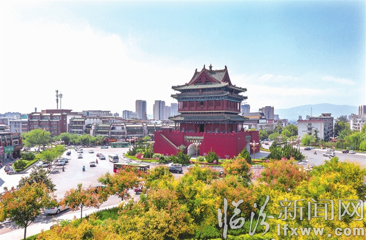 臨汾新聞網訊 初秋時節,航拍鏡頭下的市區鼓樓廣場,秋葉色彩斑斕,與鼓樓交相呼應,構成一幅優美的秋日畫卷。