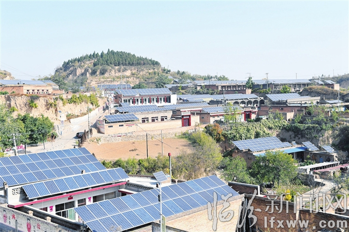 臨汾新聞網訊 近年來,汾西縣以企業、聯村、村級和戶用光伏同步建設、同步推進的方式,大力發展光伏產業,目前,總裝機容量已達186.7兆瓦,年收益2.2億元。該縣將收益分配惠及全部貧困人口,全縣農民人均增收500元。圖為僧念鎮瓦窯圪塔村的光伏發電項目。