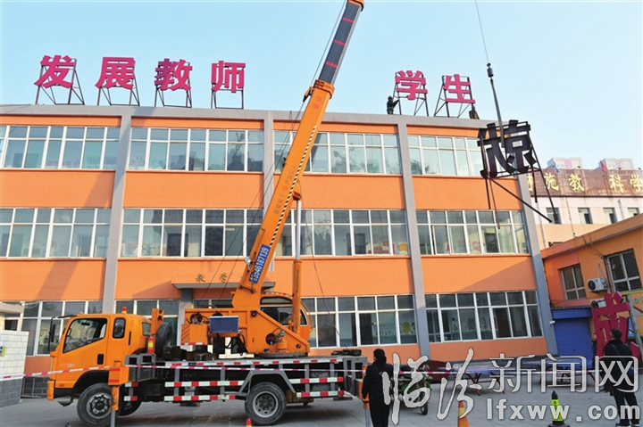 臨汾新聞網訊 近日,市城市管理局組織專業拆裝人員對堯都區西關小學樓頂具有安全隱患的廣告牌匾依法進行拆除。