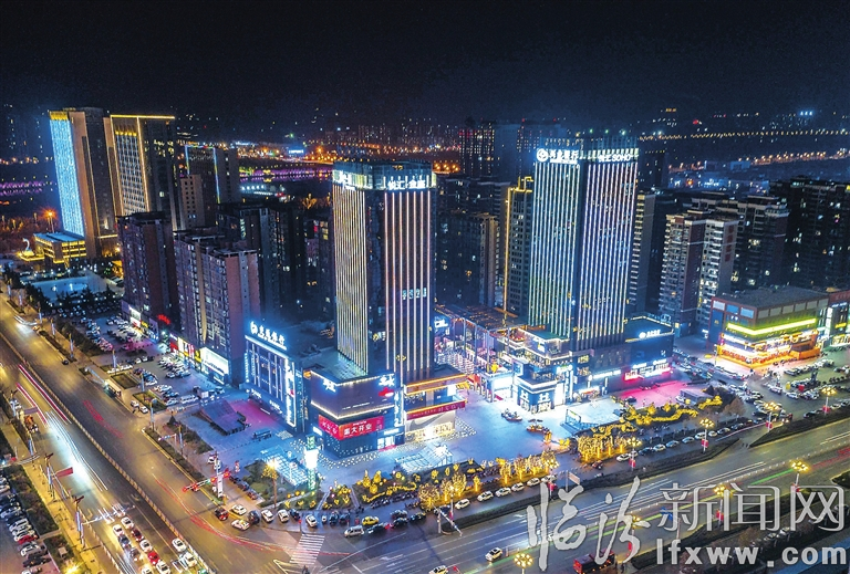 臨汾新聞網訊 圖為日前航拍鏡頭下的市區一家商業綜合體,在燈光的裝點下,絢麗多彩。近年來,隨著經濟的發展和產業的升級,我市涌現出一些新型的商業綜合體商圈,成為一站式消費與社交的時尚新地標,為城市的發展注入了強大的動力。