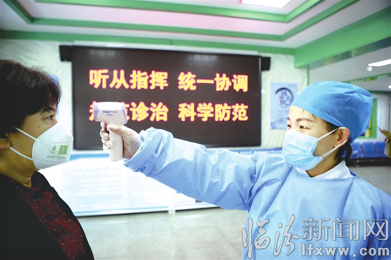 臨汾新聞網(wǎng)訊 1月30日,在市第三人民醫(yī)院門(mén)診大廳入口處,一位護(hù)士在給正常住院的患者家屬測(cè)量體溫。自確定為我市新型冠狀病毒感染的肺炎醫(yī)療救治市級(jí)定點(diǎn)醫(yī)院以來(lái),該院實(shí)行最嚴(yán)格的防控措施,全力以赴做好疫情防控工作。