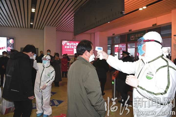 臨汾新聞網訊 節后“雙返”高峰在即,在大西高鐵臨汾西站出站口,工作人員正在對剛出站的旅客測量體溫,全力做好疫情防控。