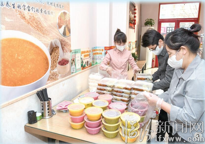 圖③ 2月11日,堯都區福利巷溫馨粥棚工作人員在整理盒飯。從1月30日起,這家粥棚免費為市第三人民醫院供應了300碗熱粥、300份午餐,用實際行動傳遞愛心。