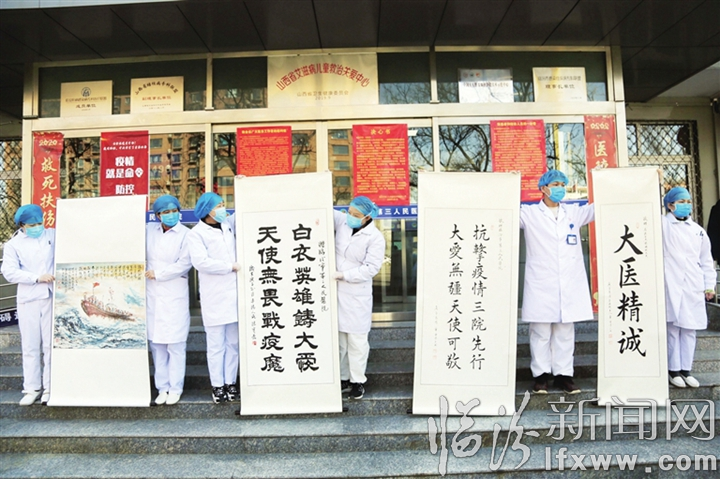 臨汾新聞網訊 2月17日,我市老黨員、退休干部宋希祥、孫寶索、章云芳為市第三人民醫院送上了他們創作的書畫作品《同舟共濟》《大愛無疆》《天使無畏戰疫魔》,受到了醫護人員的歡迎。