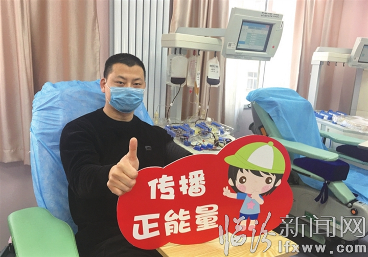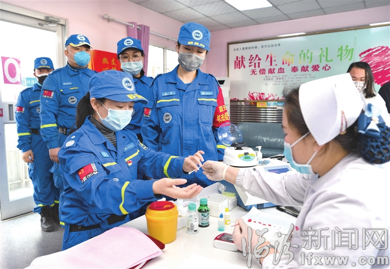 圖① 2月16日,在市中心血站,市公安局直屬分局堯廟派出所民警馬卉參加獻血。
