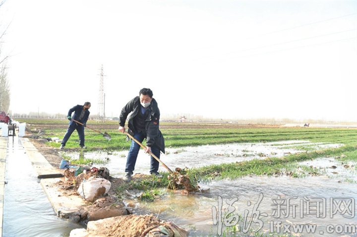 圖為曲沃縣史村鎮(zhèn)吉許村村民在灌溉小麥。