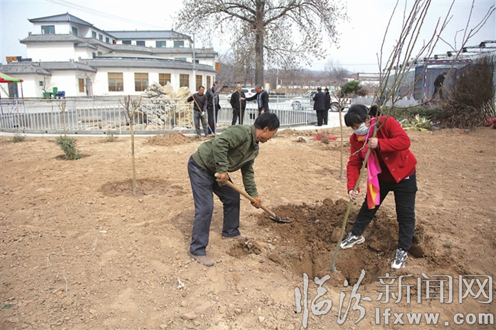 臨汾新聞網訊 3月12日是全國第42個植樹節,吉縣干部群眾齊上陣,植樹添綠,美化家園。圖為東城鄉社堤村村民在新農村廣場植樹。