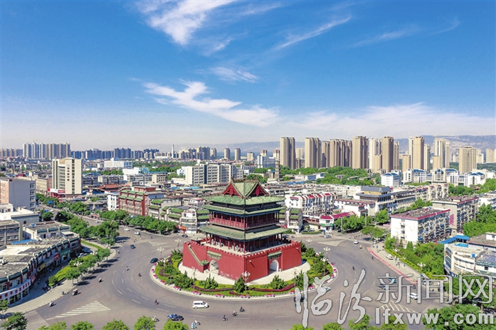 臨汾新聞網訊 6月5日,航拍鏡頭下的市區鼓樓在藍天白云的映襯下,別具韻味。炎炎夏日,平陽大地草木蔥蘢,綠樹、高樓相映,構成了一幅都市美景圖。