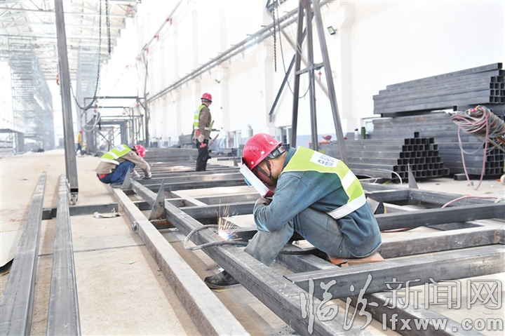 臨汾新聞網訊 大寧縣一次性防護手套產業扶貧項目是大寧縣2017年引進的重點扶貧產業項目和經濟轉型發展項目。該項目總投資7.1億元,其中二期投資3.1億元,計劃建設雙模丁腈手套生產線8條。圖為工人正在安裝二期設備。