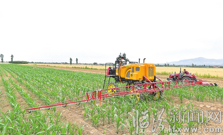 臨汾新聞網(wǎng)訊 6月14日,曲沃縣史村鎮(zhèn)農(nóng)民利用新型植保機(jī)械為玉米噴灑農(nóng)藥。該機(jī)械采用窄四輪、輪距可調(diào)和高地隙技術(shù),機(jī)具在田間作業(yè)的通過性能大大增強(qiáng),有效降低了傷苗率,減少了人工投入,提高了工作效率。