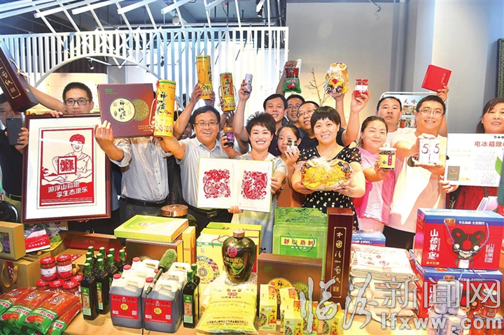 臨汾新聞網訊 圖為6月27日上午,浮山縣參展企業(yè)負責人及網紅等在直播帶游帶貨活動現(xiàn)場展示剪紙等特色產品。
