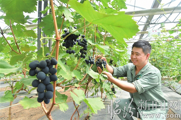 臨汾新聞網訊 8月11日,蒲縣現代農業示范園的葡萄種質資源館里,技術員正在對“摩爾多瓦”這一品種葡萄的長勢進行觀察、記錄。