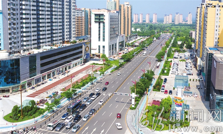 臨汾新聞網訊 市區向陽西路靚城提質街景改造工程采取道路升級改造、建筑外觀整飾、街道綠化提質、公用設施提質“四位一體”的整治措施進行,提質后,將實現人車分流,“還路于民、還市于場、還美于城”。圖為近日航拍的向陽西路。