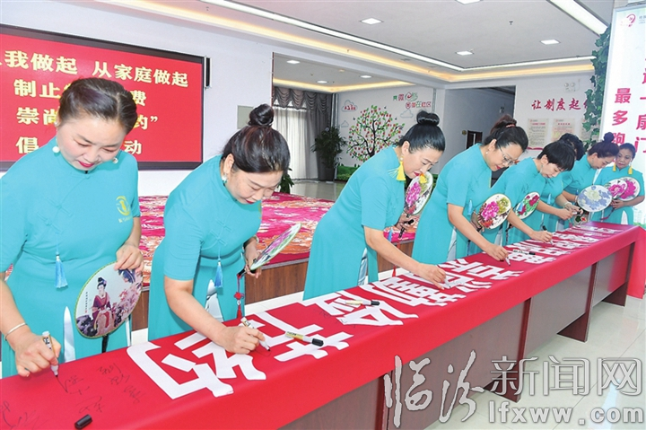臨汾新聞網(wǎng)訊 8月19日,侯馬市澮濱街道秦北社區(qū)舉行“制止餐飲浪費(fèi),崇尚勤儉節(jié)約”宣傳活動,號召居民從“我”做起、從日常做起、從點(diǎn)滴做起,日常餐飲以“光盤”為榮。圖為社區(qū)居民在條幅上簽名。