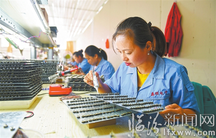 臨汾新聞網訊 9月10日,大寧縣鑫輝電子元件制造有限公司生產車間內,工人們正在加緊生產。該公司采取“生產線下鄉扶貧”模式,分別在大寧縣徐家垛鄉南桑峨村、三多鄉劉家莊村以及曲峨鎮曲峨村建成并投產了3條扶貧生產線,提供就業崗位800個,有效促進了大寧經濟發展。