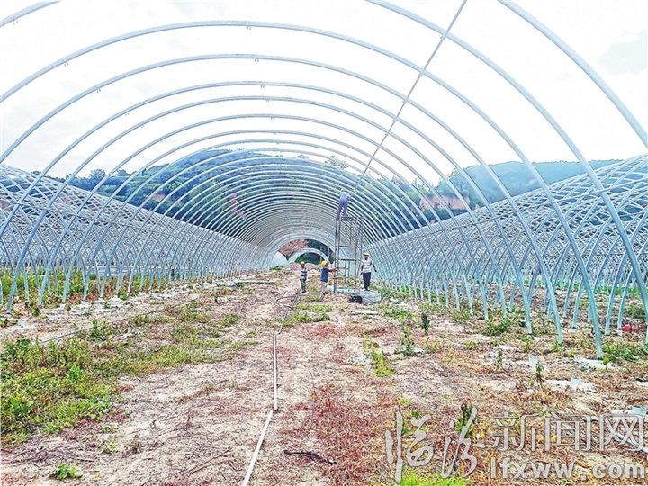 臨汾新聞網(wǎng)訊 古鎮(zhèn)西閻特色山珍十里產(chǎn)業(yè)走廊項(xiàng)目位于翼城縣西閻鎮(zhèn)西閻村,將建設(shè)香菇種植大棚103個(gè),其中發(fā)菌棚23個(gè),出菌棚80個(gè)。項(xiàng)目建成后,預(yù)計(jì)新增員工56人,可以解決該鎮(zhèn)一部分剩余勞動力就業(yè)問題。圖為,近日施工人員正進(jìn)行大棚鋼架結(jié)構(gòu)建設(shè)。