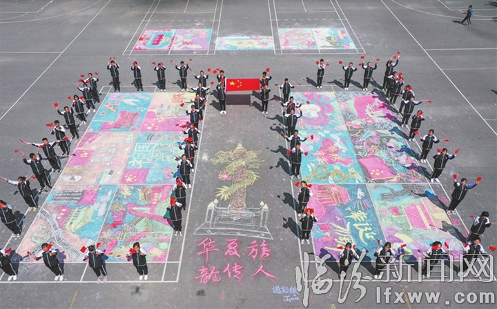 臨汾新聞網訊 9月24日,山西師范大學實驗中學高一年級的學生在“國慶主題”粉筆畫前合影留念。當日,該校舉辦了主題為“祝福祖國”大型地面創(chuàng)意粉筆畫活動。高一年級17個班級800余名學生以地面為畫板,用粉筆畫出“禮贊新中國”“祖國在心中”“愛我中華”等17幅風格鮮明的粉筆畫作品,表達了對偉大祖國的深深祝福。